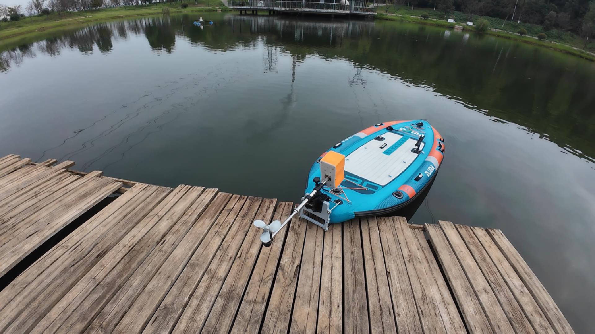 将一体化主机居中安装在您的水面载具头部或者尾部,主机前进方向务必居中指向您的载具船头,后续您可以在手动模式下启动动力检查主机是否安装正确,正确安装情况下,您的载具将保持直线的前进或者后退。